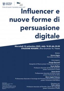 Due incontri divulgativi dedicati a riflettere su come il marketing online e l’influencer marketing influenzano le nostre vite digitali, tra dinamiche persuasive, regole giuridiche, implicazioni etiche e culturali.